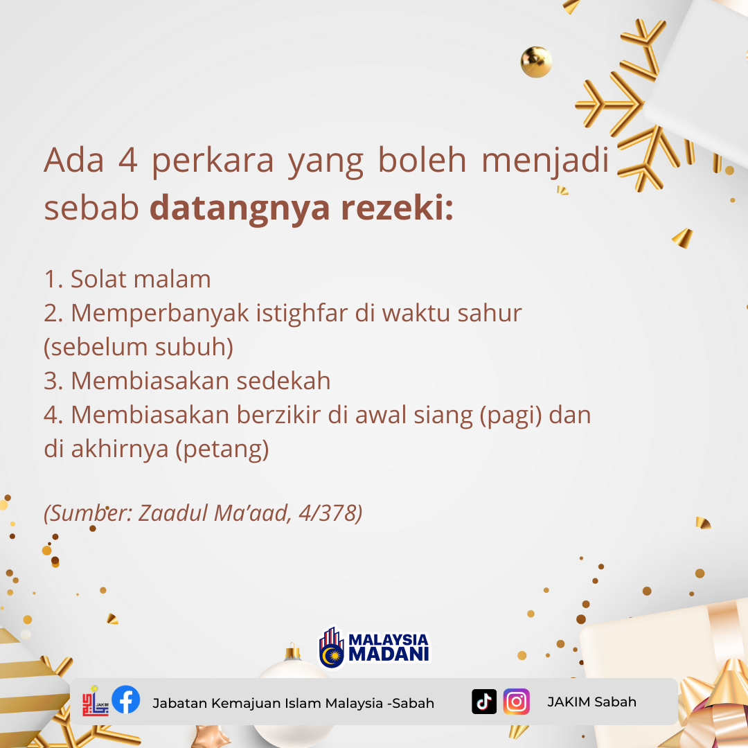 Penafian : Jabatan Kemajuan Islam Malaysia Cawangan Sabah tidak bertanggungjawab terhadap sebarang kehilangan atau kerosakan yang dialami kerana menggunakan maklumat dalam laman ini.